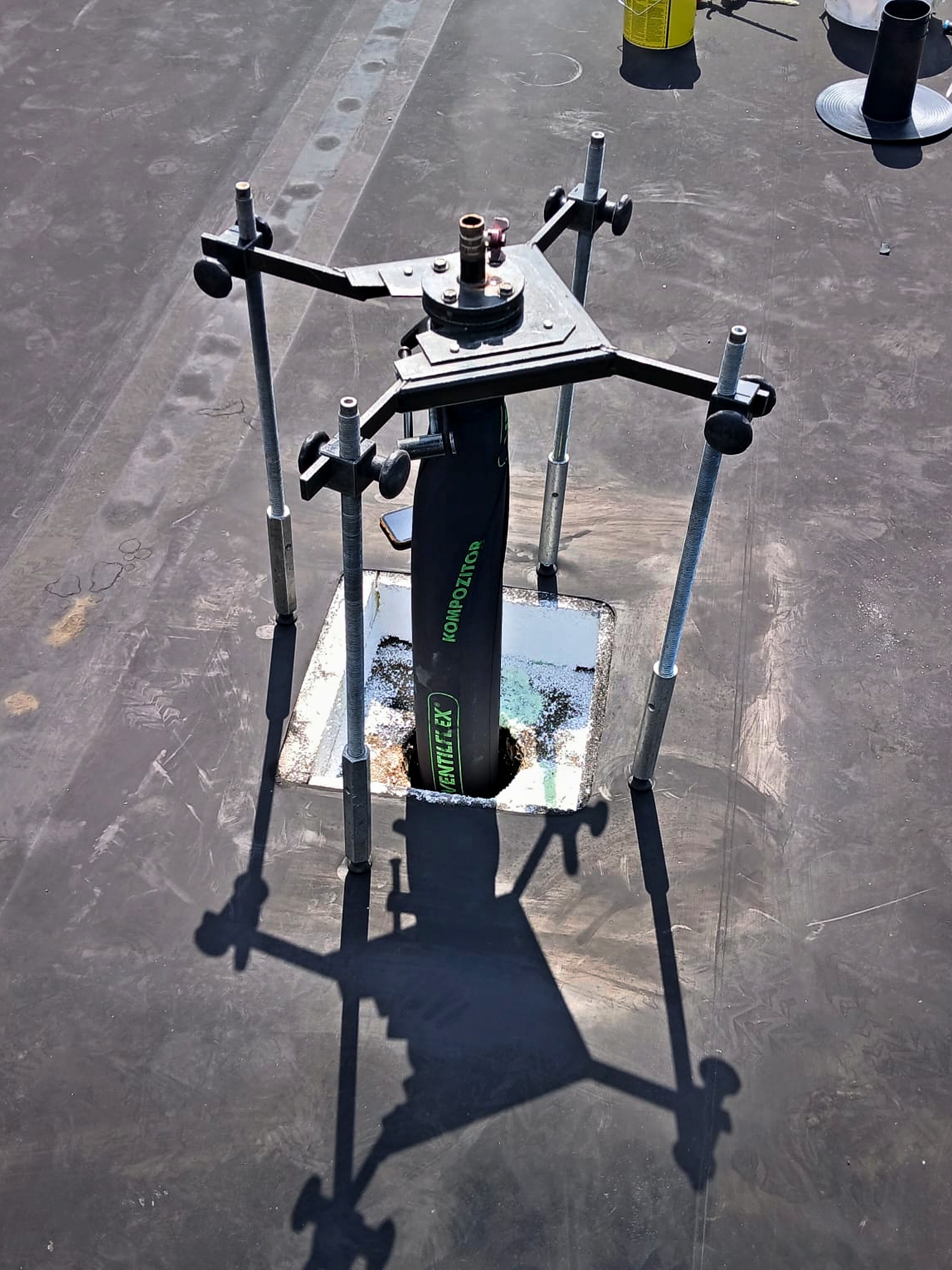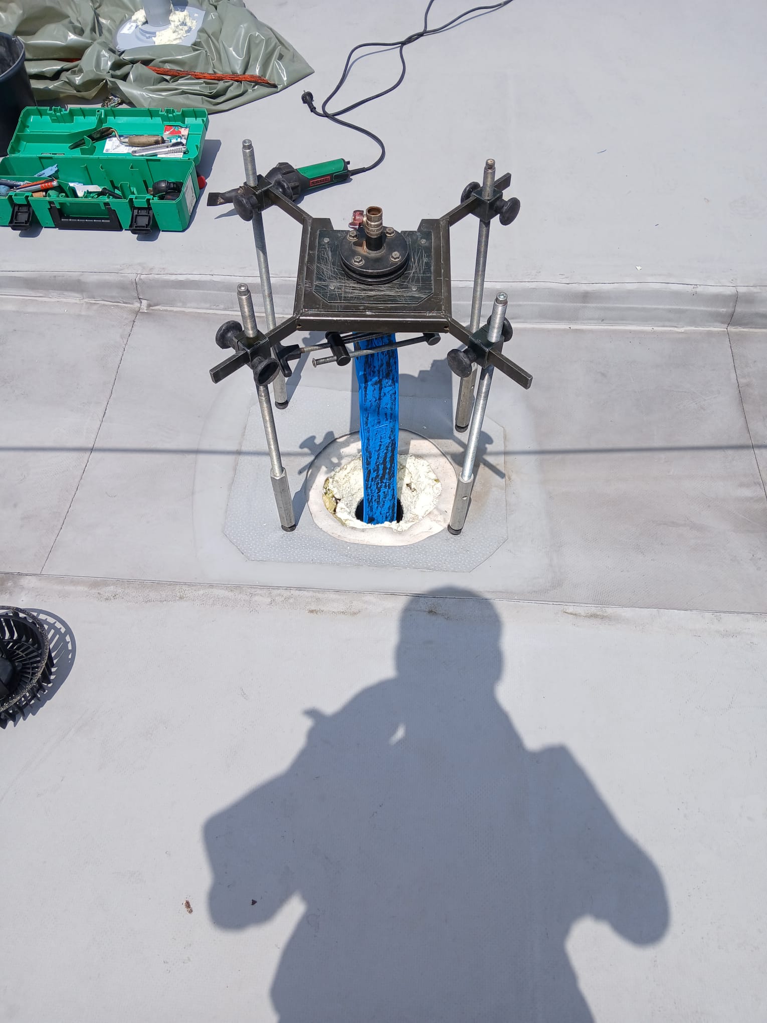 - Odstranění (demontáž) stávající dešťové vpusti svodu na střeše – externí firmou
